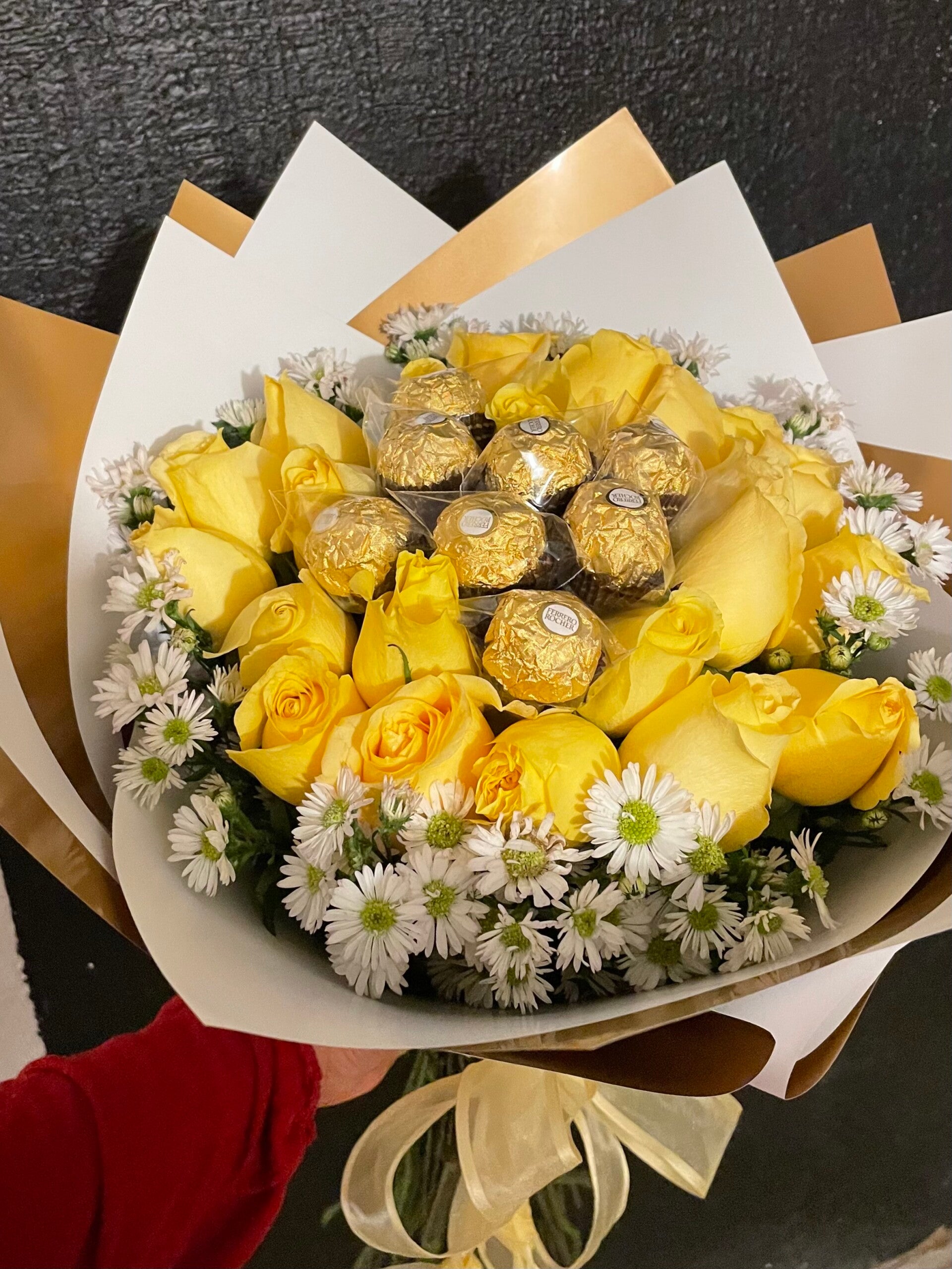 3 docenas de rosa dos colores o un solo color a elegir y ferrero