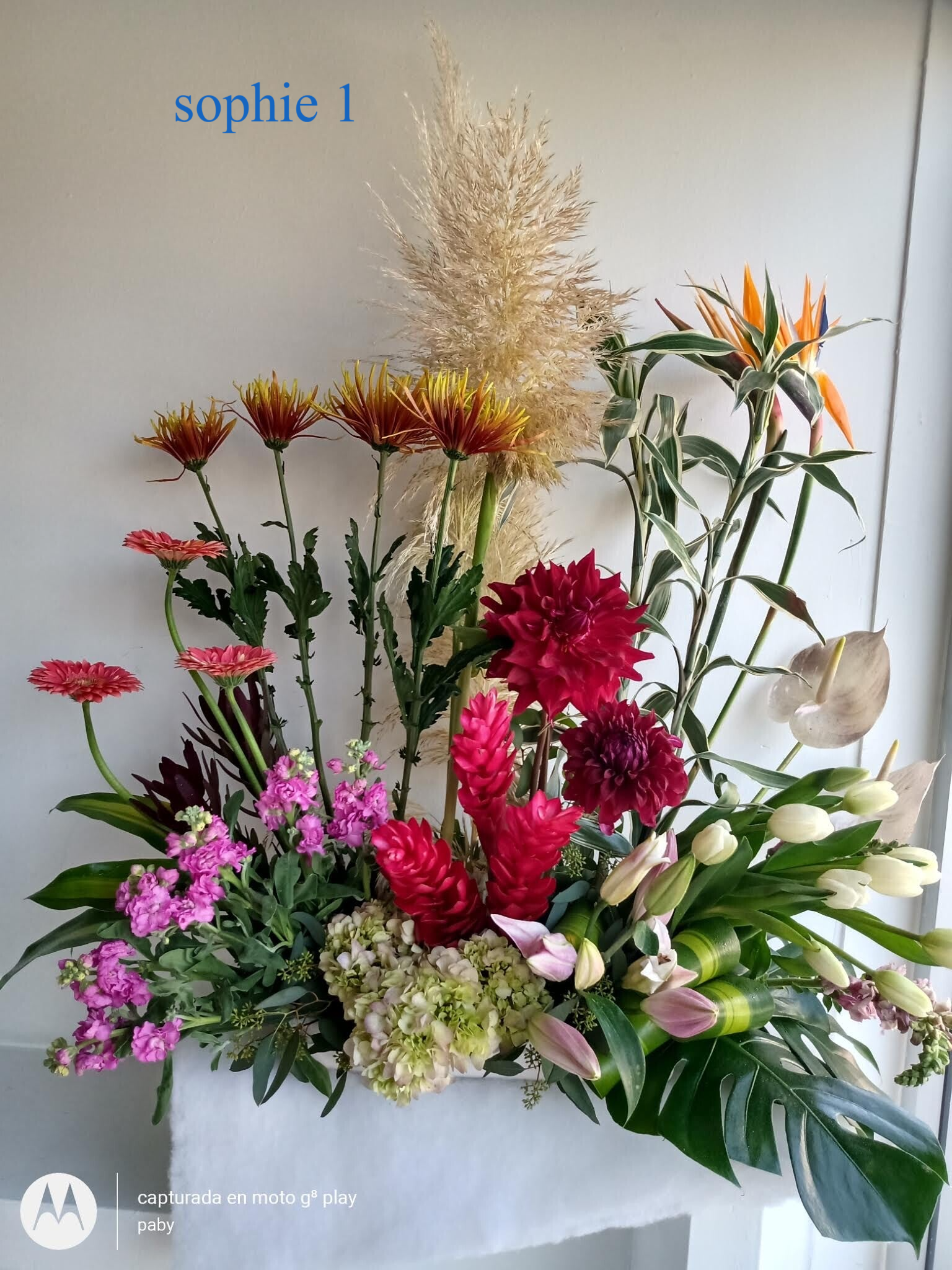 - Sophie 1, Anthurium, ginger, Leonoras (solo en temporada), Espider, Tulipan, Aleli, Hortencia,