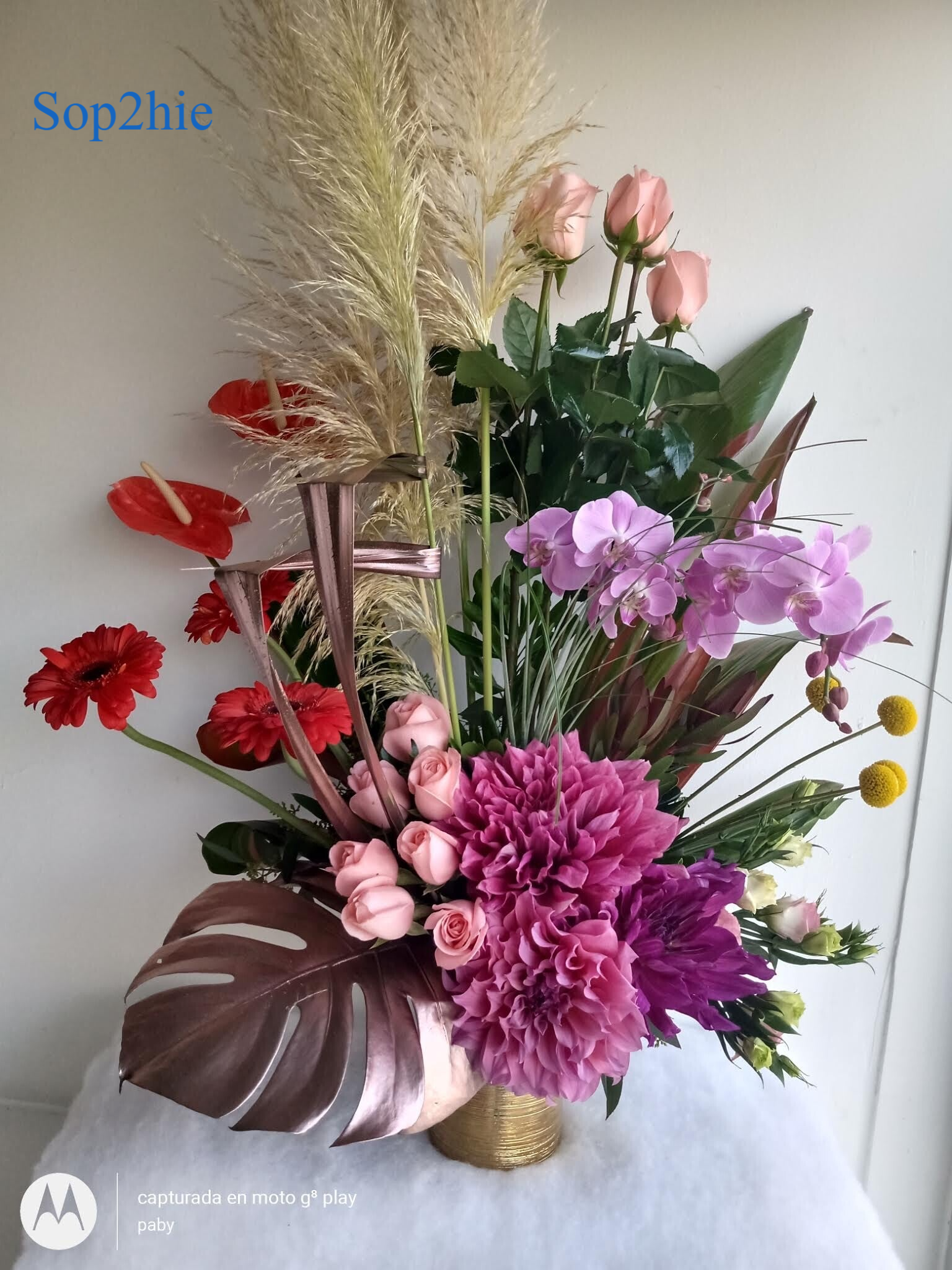 - Sophie 2, Rosas, Phalaenopsis (orquidea) Leonora, Cola de Zorro.