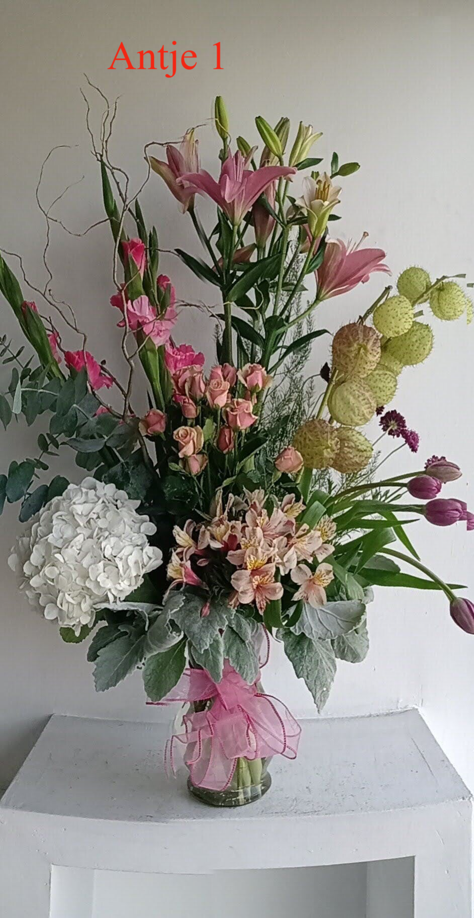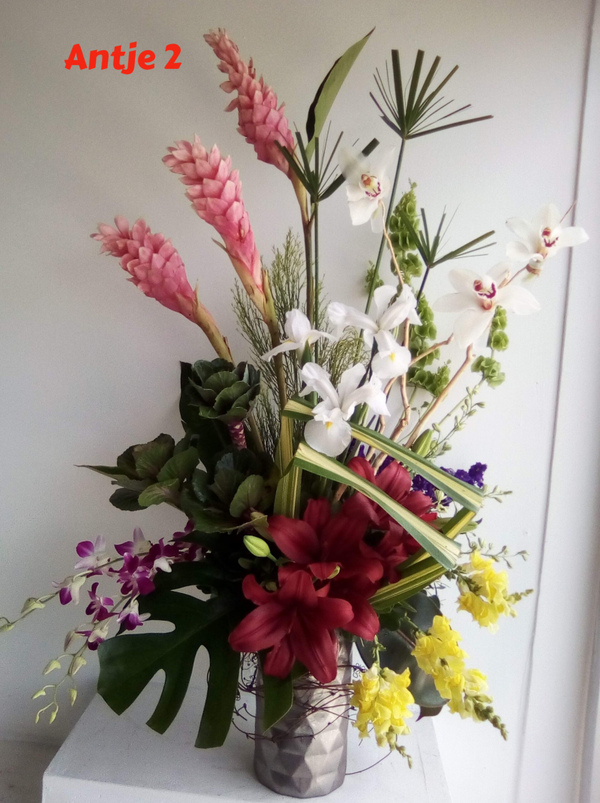 Arreglos destilizados unicos podriamos hacer algo parecido, lo basico que lleva es anthurium, rosas, tulipan, lilis, hortencia, la base puede ser diferente, pregunta por el que mas te guste.